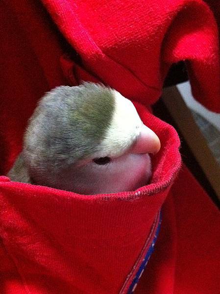 很愛鑽到衣服裡,但她學會咬人的壞習慣之後就不讓他鑽了XD