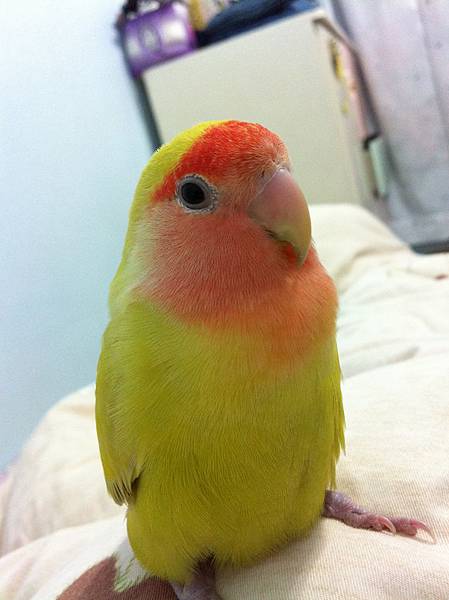 粉粉是跟鳥版版友認養來的~纏著我爸開車帶我去淡水接他回來:))
